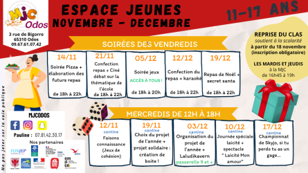 voici le programme avec des nouveautés, des projets et des idées ! Et pour les mercredis: pensez à réserver le repas si vous le souhaitez.
