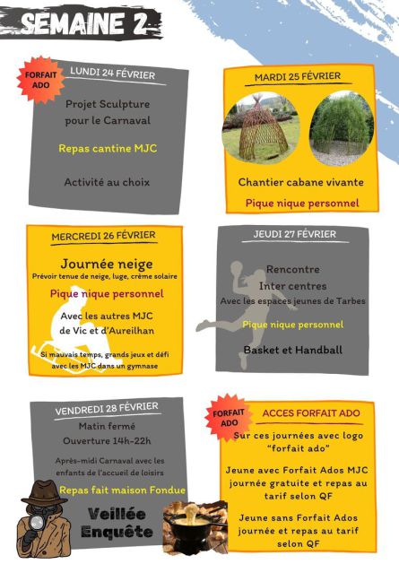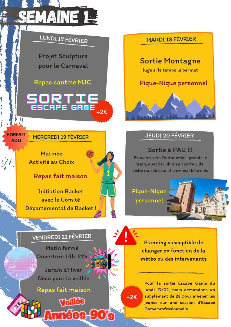 Sorties, Veillées, grands jeux, inter-centres, nature, neige, basket, sculpture Carnaval, escape game, enquêtes...y'en a pour tous les goûts !