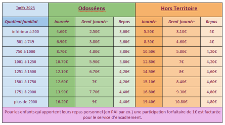 - pour les enfants qui apportent leur repas personnel (PAI par ex.) une participation forfaitaire de 1€ est facturée pour le service d'encadrement.