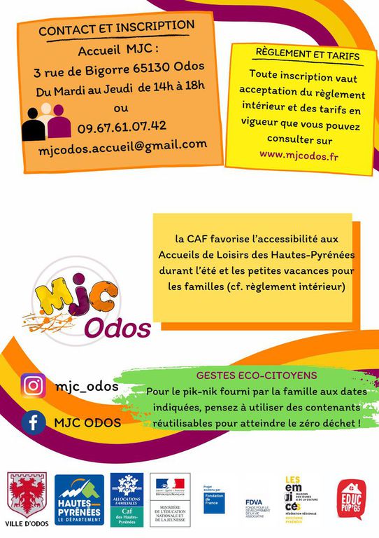 envoyer un courriel à : mjcodos.accueil@gmail.com