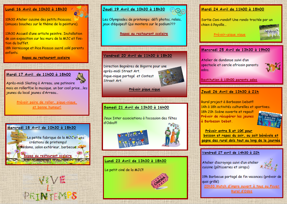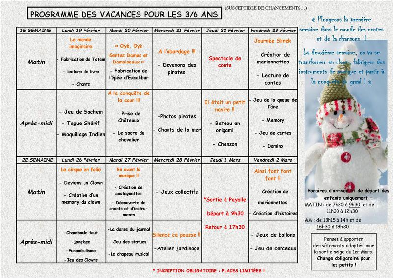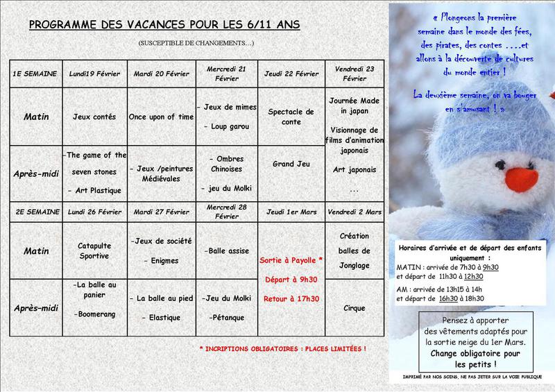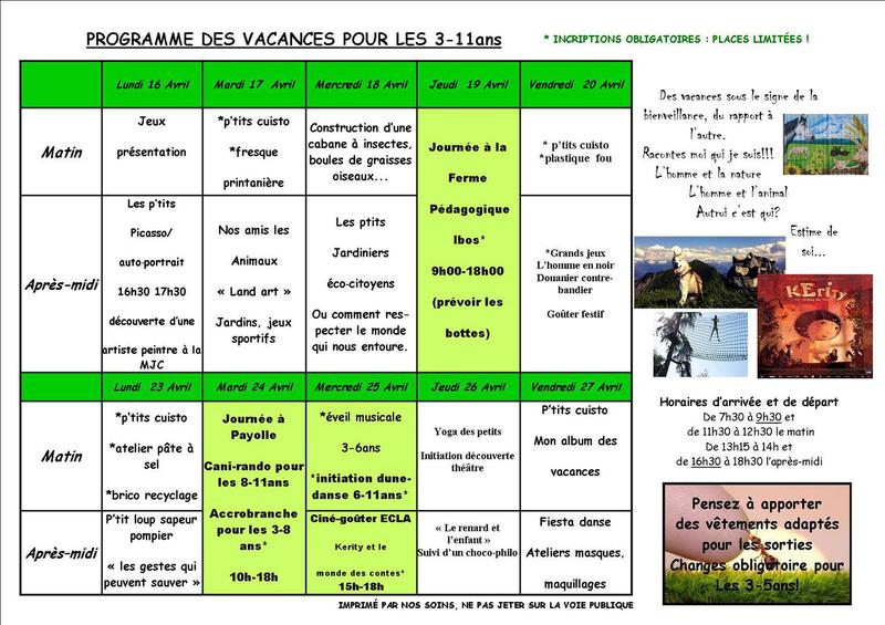 programme des vacances d'Avril pour les 3-11ans !!!